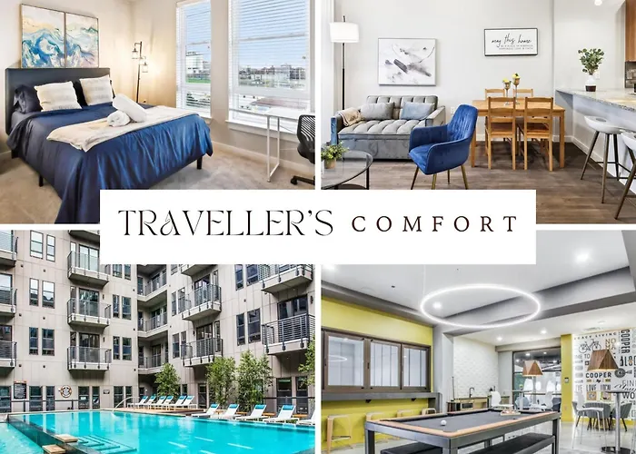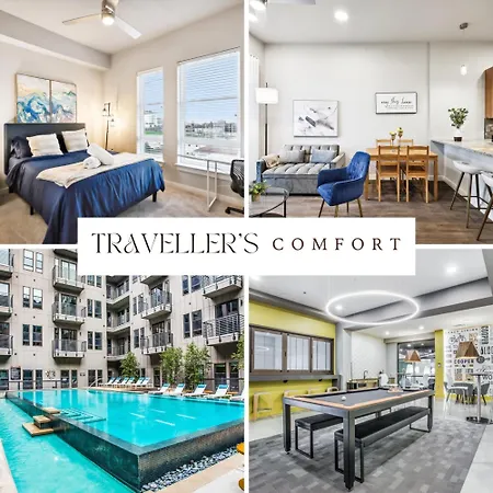Das Grand Urban Haven, 2 Bedroom, Pool, Gym, Parking ist der ideale Rückzugsort für Reisende, die Kombination aus modernem Komfort und urbaner Atmosphäre suchen. Eingebettet in die pulsierende Umgebung von Fort Worth, bietet dieses Hotel eine exquisite Mischung aus stilvollem Design und erstklassigen Annehmlichkeiten.
